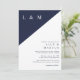 Navy Blue White Elegant Modern Minimalist Wedding Invitation