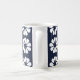 Navy Blue White Floral Coffee Mug originally designed by Nisha Prabhu. A navy blue and white floral coffee mug combines timeless elegance with a refreshing design. The mug features a deep navy blue background decorated with intricate white floral patterns, creating a striking contrast that is both stylish and sophisticated. The floral motif adds a touch of nature-inspired charm, making this mug an ideal accessory for brightening up your morning routine or serving as a beautiful gift for someone special. Its classic design complements various kitchen styles, adding a touch of elegance to any beverage experience.