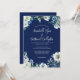 Navy Blue White Floral Handwritten Winter Wedding Invitation