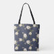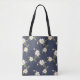 Navy Blue White Floral Tote Bag