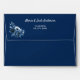For winter, spring wedding invitations, save the dates or thank you cards. Outside: Navy blue background. Inside: A chic white background color and watercolored roses, flowers in shades of blue. Back Templates for names and address. White colored letters.