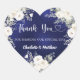 A navy blue, uneven colored background. Decorated with white florals, roses and a heart. Personalize and add your names. With the text: Thank you for sharing our special day.