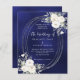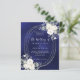 Navy blue white florals wedding QR RSVP invitation