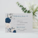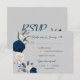 Gorgeous navy blue & white flowers with silver leaves on gray background with meal choice botanical RSVP card