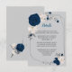 navy blue & white flowers silver geometric details enclosure card