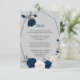 Romantic navy blue & white flowers with silver leaves geometric frame details enclosure card