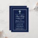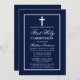 Elegant Navy Blue First Holy Communion Invitation with Cross. White Frame.