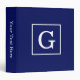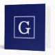 Navy Blue White Framed Initial Monogram 3 Ring Binder
