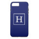 Navy Blue White Framed Initial Monogram Case-Mate iPhone Case