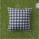 Stylish modern navy and white outdoor pillow features a simple trendy geometric lattice pattern. The navy geometric polygons are interspersed with the white linear pattern in between, creating a simple classic lattice pattern suitable for any decor.