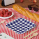 Blue and white gingham pattern is made of navy blue, white, and light blue squares in a bold buffalo plaid.
