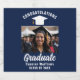 This modern navy blue and white custom senior graduate beer bottle label features your high school or college senior photo for the class of 2025. Customize with your graduating year under the bold handwritten script and grad cap for a great personalized graduation photograph label for your party.
