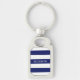Navy Blue White Horiz Preppy Stripe #3 Monogram Keychain