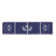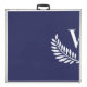 A navy blue background. Decorated with a classic white laurel wreath. Personalize and add your family name's initial, names and a date. white text.