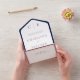 AVAILABLE WITH OR WITHOUT A QR CODE TO SCAN IN THE RSVP AREA. This simple yet elegant design has a modern look, with a two-toned navy blue and white background. Add a QR code to your invitation so that gusts can quickly access your wedding Website for details, directions, menu options, and more, or add your gift registry Web URL. Personalized All-In-One invitations are a unique combination of both a beautifully printed custom invitation with an easy to tear off perforated RSVP postcard. And they are so easy to use! You simply fold, then seal the back flap with the three included clear stickers, and mail. And when your guests receive your custom invite, they just tear the perforated RSVP Card off and drop it back in the mail to you! Created by Simply Farmhouse Press.