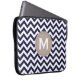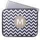 Navy Blue White Monogram Chevron Pattern Laptop Sleeve