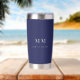 Navy blue background. Personalize and add your monogram initials and full name. White text.