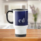 A navy blue background. The blue color is uneven. Personalize and add a name and monogram initials (x3). The name is written in white with modern block letters.