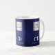 A navy blue background. The blue color is uneven. Personalize and add your business logo (3), a name and monogram initials (3). The name is written in white with modern block letters.