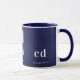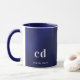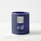 A navy blue background. The blue color is uneven. Personalize and add your business logo, a name and monogram initials (x3). The name is written in white with modern block letters.