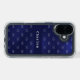 A navy blue background.The blue color is uneven. Personalize and add a name and monogram initials. The name is written in white with modern block letters. Your monogram initials as a background pattern.