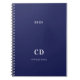 Navy blue white monogram name minimalist notebook