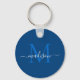 Navy Blue White Monogram Name Modern Girly Script Keychain