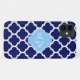 Navy Blue White Moroccan #5 Sky Blue Name Monogram Case-Mate iPhone Case