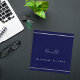 A classic navy blue background, a faux silver looking frame. Personalize and a name and text. White text.