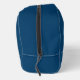 Personalize your toiletry bag with your name and the yacht name in white on a navy blue background.