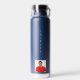 White text printed on a navy blue bottle. Personalize and add your name and a profile photo.