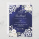 Navy blue white roses lace QR code wedding Invitation