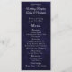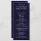 This elegant 4" x 9.25" wedding reception menu features a rich navy blue textured background with refined script and classic serif typography for a timeless, formal look. Designed in a tall, narrow format, this menu clearly presents each course while adding a polished touch to reception tables. The deep navy color and classic layout make it ideal for traditional, black-tie, and evening wedding receptions.