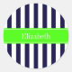 Navy Blue White Stripe Lime Name Monogram Classic Round Sticker