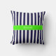 Navy Blue White Stripe Lime Name Monogram Throw Pillow