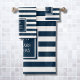 Navy Blue White Stripe Personalized Monogram Bath Towel Set