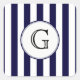 Navy Blue and White Medium Stripes Pattern with Round White Monogram Label
