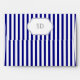 Navy blue, white stripes and anchor nautical wedding envelope. A stylish striped pattern design with navy blue, white vertical stripes, an anchor with a blue heart and rope and your initials in a frame. Contemporary yet with a vintage look in a sense. You can change background and text color choosing from over 200 colors from Zazzle color chart. This classy design is a completely customizable template and is part of a wedding set perfect for a summer wedding.