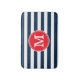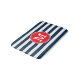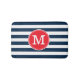 Navy Blue White Stripes Minimal Bold Red Monogram Bath Mat