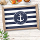 Navy Blue White Stripes Nautical Anchor Boat Name Serving Tray
