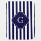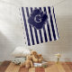 Navy Blue White Stripes, Navy Label Monogram Baby Blanket