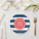 Navy Blue White Stripes Pattern, Coral Monogram Paper Plates