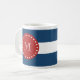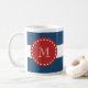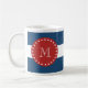 Navy Blue White Stripes Pattern, Red Monogram Coffee Mug