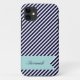 Navy Blue & White Stripes w Monogram iPhone 5 Case