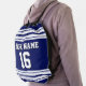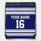 Navy Blue White Team Jersey Custom Number Name Drawstring Bag