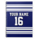 Navy Blue White Team Jersey Custom Number Name Notebook