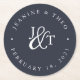 Navy Blue & White Wedding Monogram Round Paper Coaster