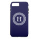 Navy Blue Wht Greek Key Rnd Frame Initial Monogram Case-Mate iPhone Case
