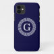Navy Blue Wht Greek Key Rnd Frame Initial Monogram Case-Mate iPhone Case