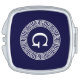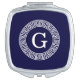 Navy Blue Wht Greek Key Rnd Frame Initial Monogram Compact Mirror